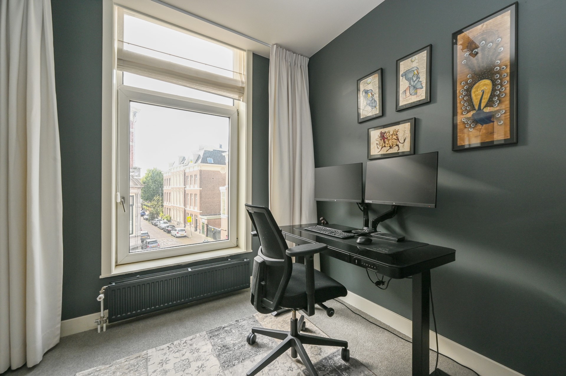 In a prime location in the popular Zeeheldenkwartier district, this fully renovated and extremely energy-efficient 168 m² A+++ duplex apartment boasts a sunny terrace with exceptional views of the Peace Palace. Enjoy peaceful living, yet still within walking distance of the town center, shops, restaurants, and excellent schools. The property underwent a high-quality renovation in 2017 and will be fitted with 12 solar panels and a heat pump in 2025, resulting in very low energy bills and future-proof living comfort. Fully insulated, excellently maintained, and finished with meticulous attention to detail.