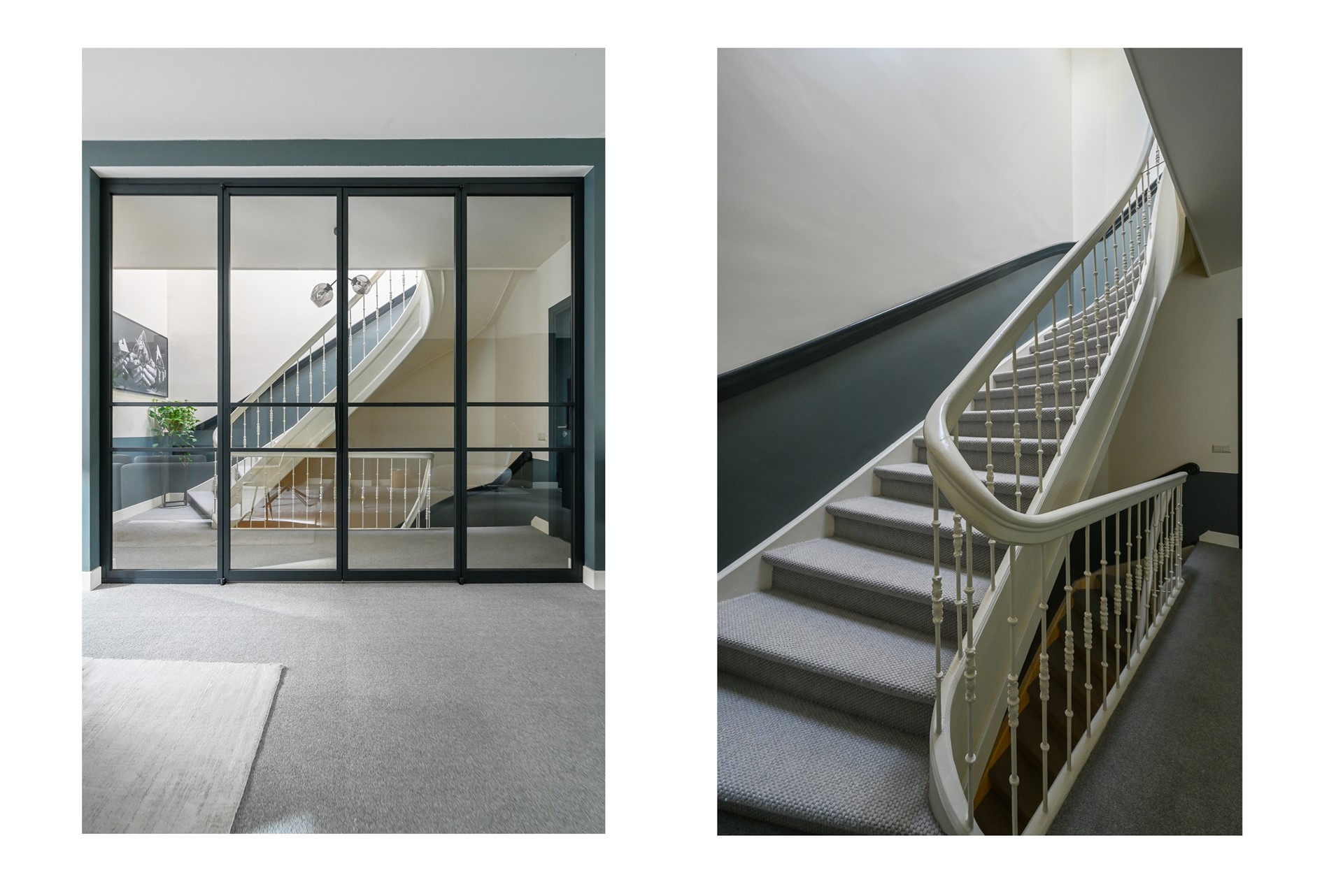 Entrance on the ground floor with a hall offering space for bicycles/strollers, a meter cupboard with a renovated distribution board, and stairs to the mezzanine with a large landing offering ample space for a wardrobe and stairs to the living area.