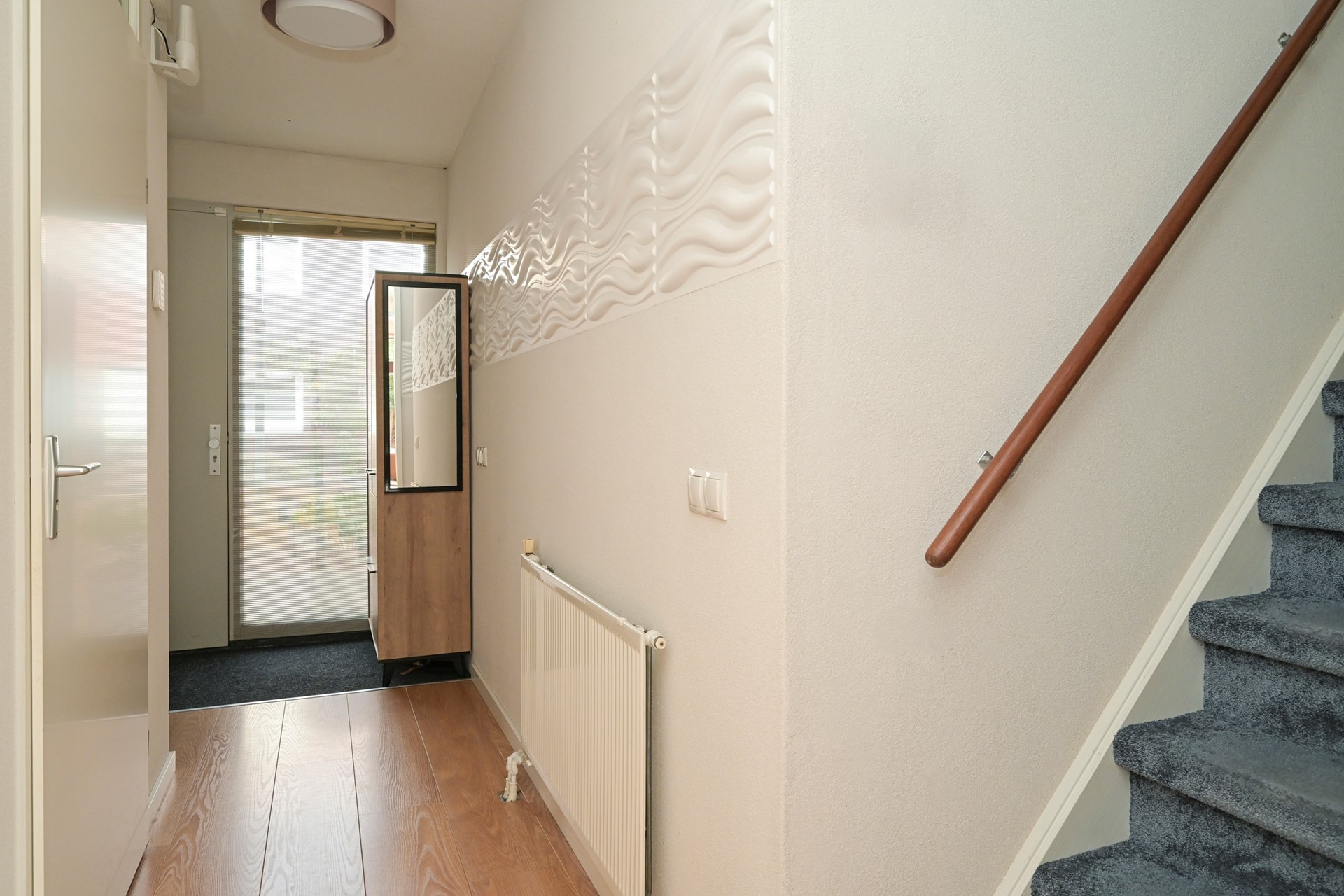 • Ruime hal met meterkast, modern toilet met fontein en vaste kast met bergruimte