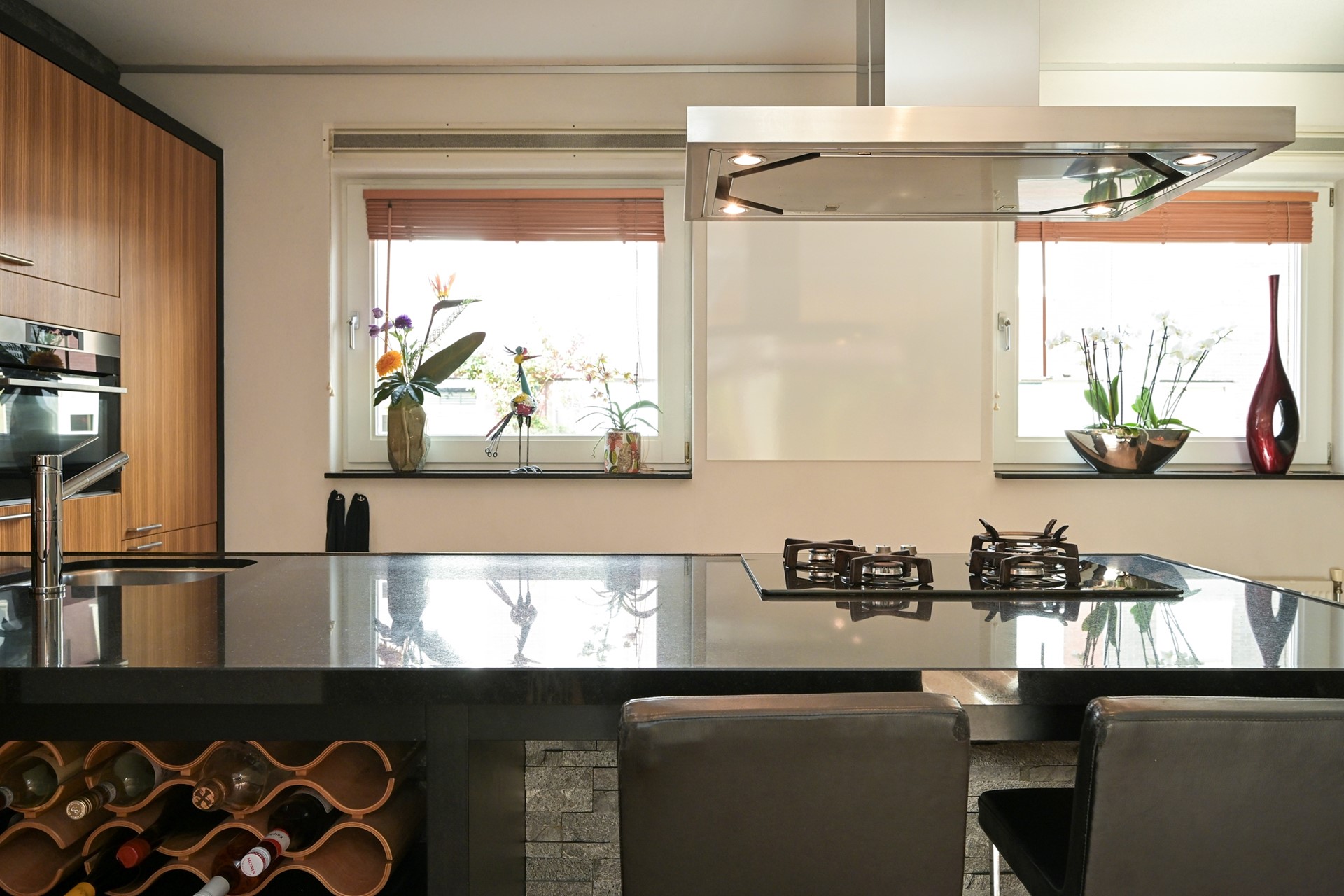 • Grote open woonkeuken met natuurstenen werkblad, veel kastruimte en inbouwapparatuur