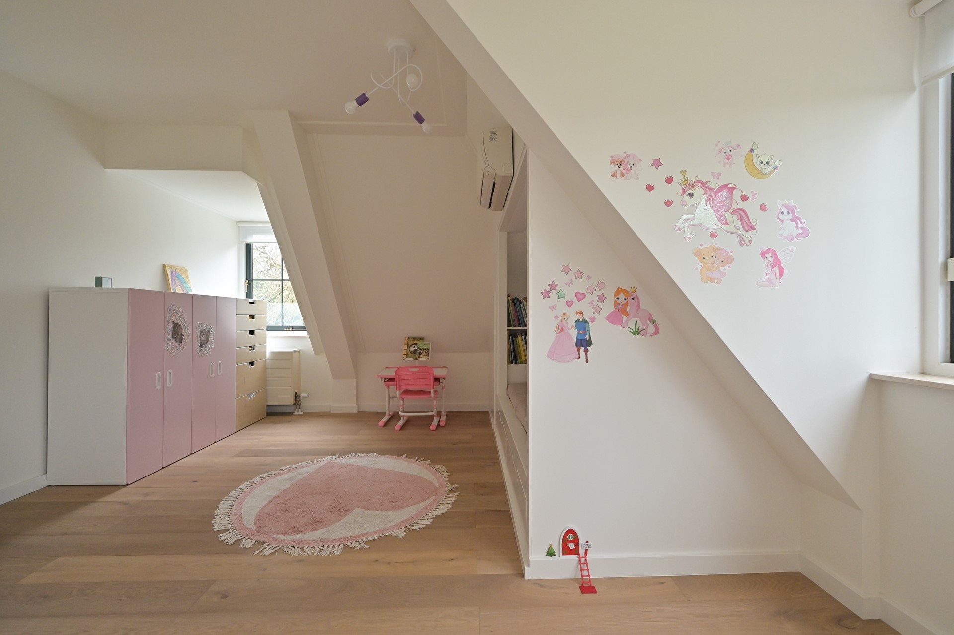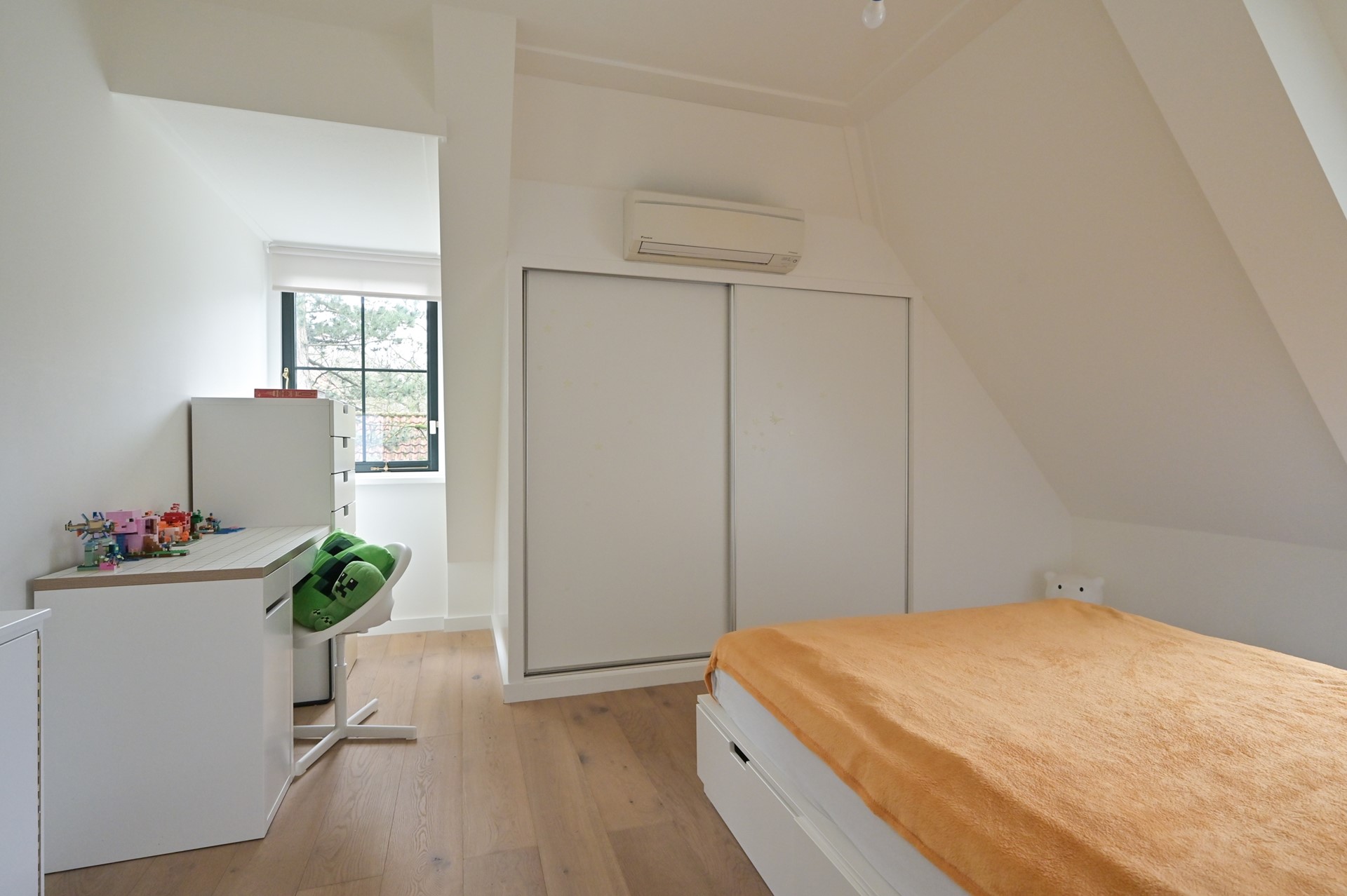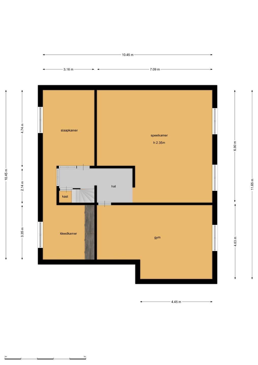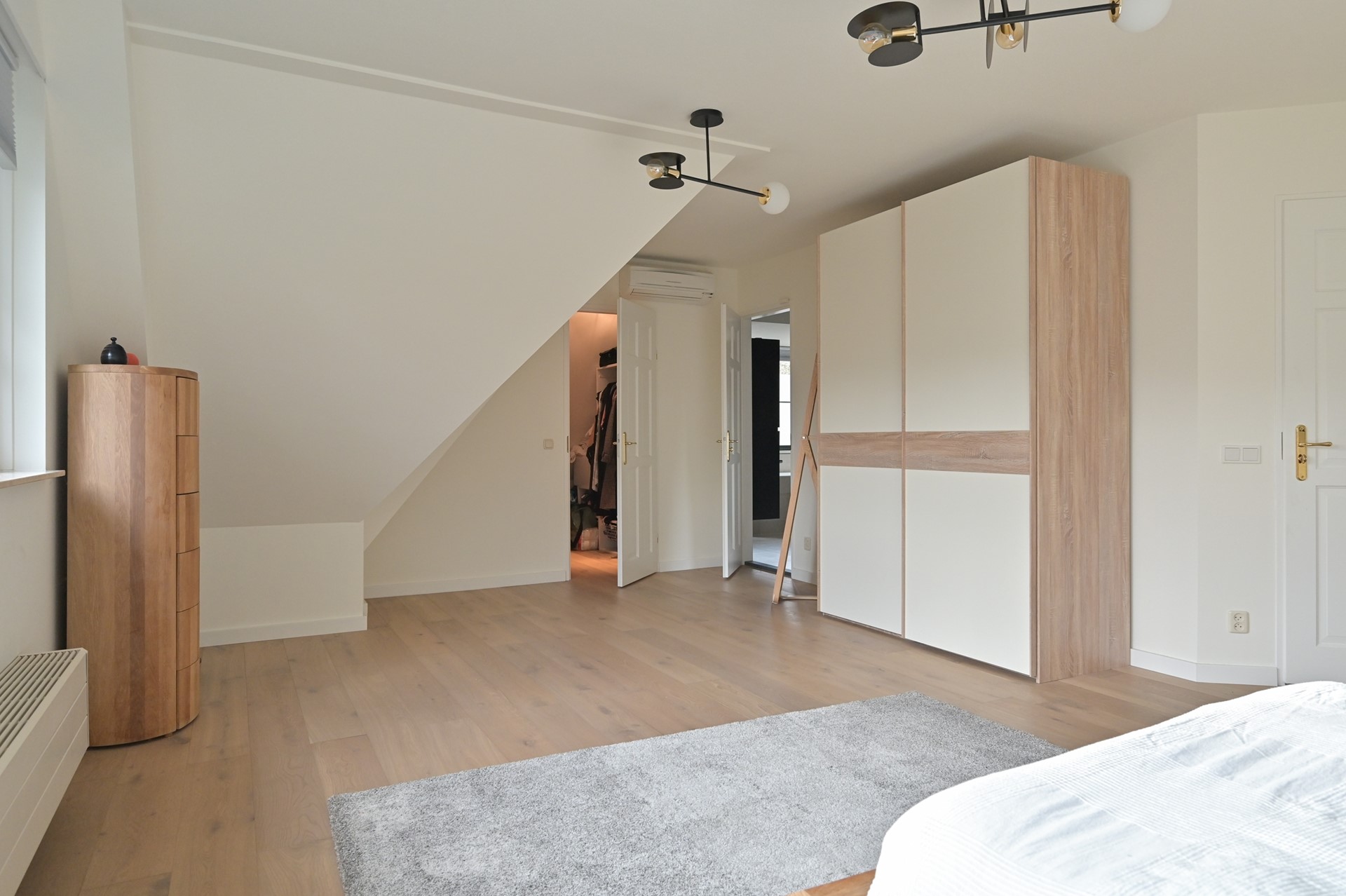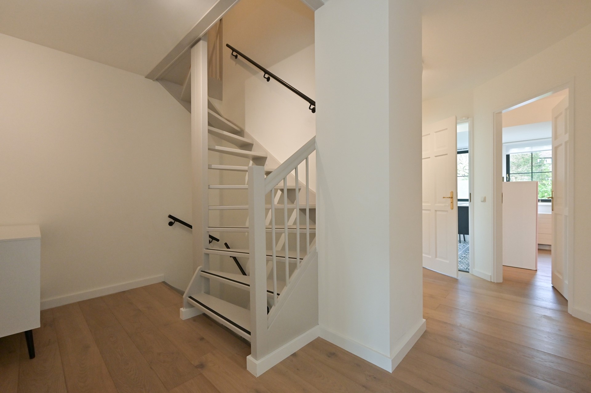 Hal met toegang tot alle drie de kamers. Slaapkamer met kleedkamer, slaapkamer thans in gebruik als gym en 3e slaapkamer thans in gebruik als speelkamer. De hoogte is 2.35 en alle kamers voorzien in natuurlijk licht & lucht middels ramen.