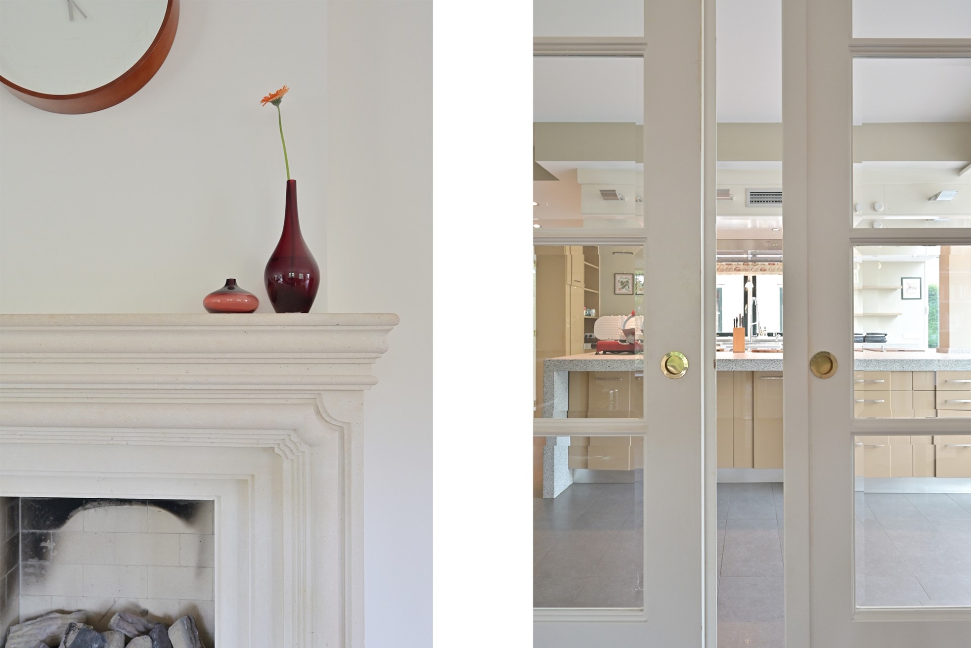 Entree woning, hal met garderode, toilet en openslaande deuren naar de woonkamer. Woonkamer met veel lichtinval door de diverse raampartijen en de aangebouwde serre. Thans dient de serre als kantoorruimte, deze kan echter ook dienst doen als eetkamer met fraai zicht op de tuin. Royale woonkeuken met veel werkblad, kastruimte en luxe inbouwapparatuur.