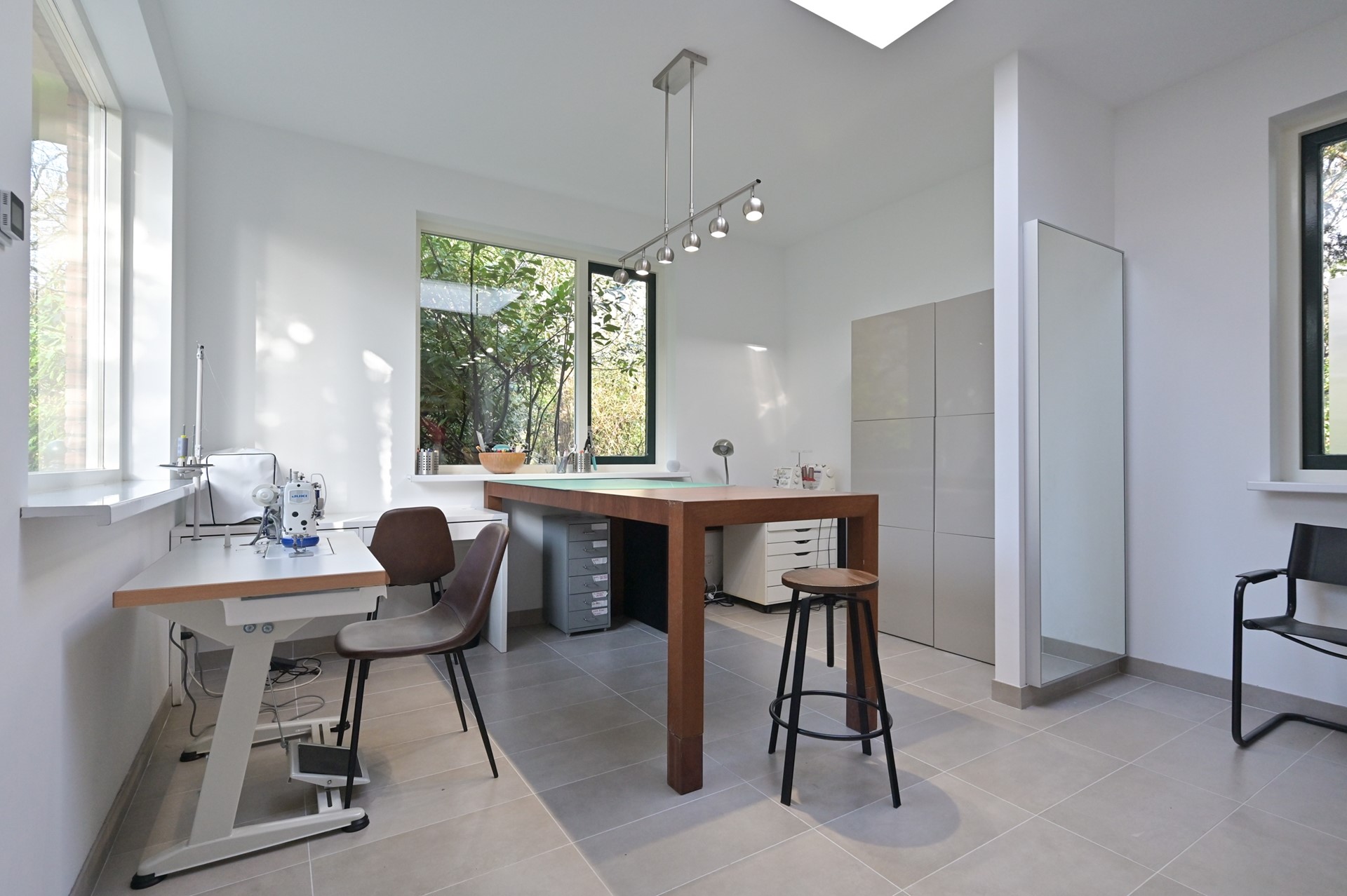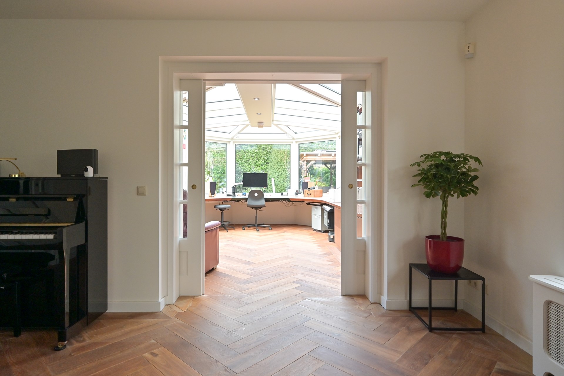 In de tuin is in 2022 een zelfstandige kantoorruimte cq. atelier gebouwd, deze is voorzien van extra veel daglicht door het plaatsen van een dakraam. Er is een eigen groepenkast voor de elektra en voorzien van vloerverwarming.
